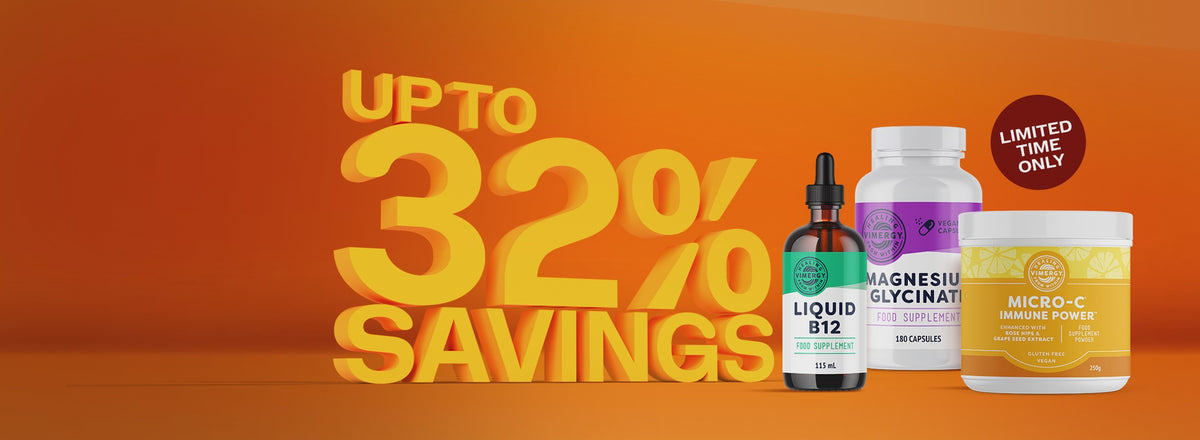 Terms and Conditions Apply. Offer valid November 20, 2025, to November 28, 2025. Customers will receive a discount of up to 20% on all Mix+Save eligible packs and 15% on select Refill & Value packs. Customers who spend £250 or more will receive a free Seasonal Immunity Kit (Soothe Wise* and 3 WellMix Glasses). Seasonal Immunity Kit is available in limited quantities and will be automatically added to eligible orders on a first-come-first served basis. Discounts and Free Seasonal Immunity Kit are applied at checkout. Mix+Save offer applies to Full-Size packs (discount % varies based on number of unique Full-Size packs included in the order); Mix+Save discount is not applicable on Travel, Refill, or Value packs, or Kits. Mix+Save discount may be stacked with Sign Up+Save for a total of up to 36% savings. Discount cannot be combined across multiple orders. Offer only valid at vimergy.com, vimergy.co.uk, or vimergy.eu. The offer does not apply to scheduled subscription orders. Offer not valid at any other store that carries VIMERGY products. Not applicable on previous purchases. No price adjustments. Additional terms and conditions may apply. Offer valid while supplies last, no rainchecks. Not applicable on previous purchases. No price adjustments. Additional terms and conditions may apply.